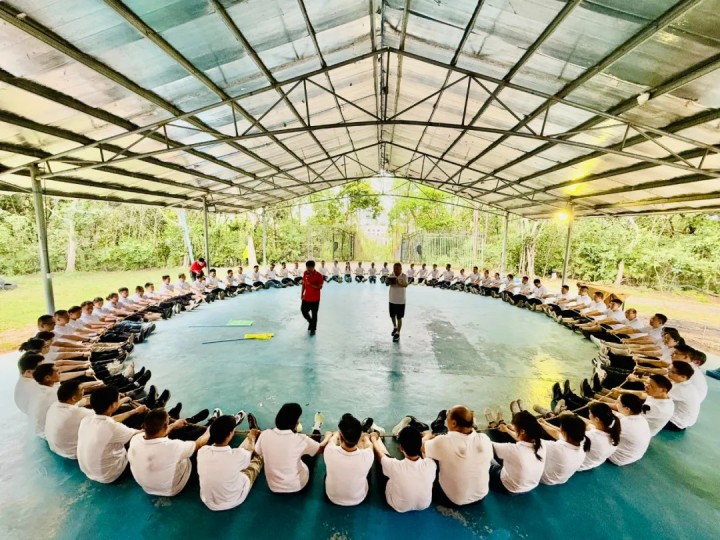 協作挑戰,默契升級: “不倒森林”考驗著團隊的專注力與交接配合,每一次桿子的移動都牽動人心;“怪獸過河”則是團隊對規則理解并快速執行的極致挑戰,如何在“八手五腳”的限制下集體渡河?智慧的碰撞與身體的協調在此刻完美融合;“無敵風火輪”中,隊員們化身“風火輪”的一部分,步伐一致,口號震天,向著共同的目標奮力滾動,體驗著同頻共振的力量。