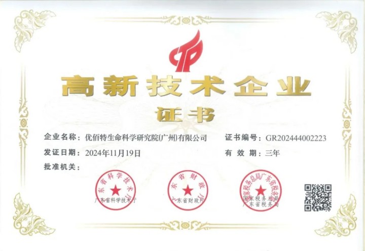 展望未來,優(yōu)佰特研究院將以此為契機,繼續(xù)加大研發(fā)投入,深化 “產(chǎn)學(xué)研” 協(xié)同創(chuàng)新模式,積極布局脂聯(lián)營養(yǎng)、合成生物學(xué)、實驗動物學(xué)等新興賽道,匯聚各方智慧與資源,力爭突破行業(yè) “卡脖子” 技術(shù),為生命科學(xué)領(lǐng)域的發(fā)展貢獻更多創(chuàng)新力量。公司董事長表示:“我們將以高新資質(zhì)為新起點,秉持創(chuàng)新驅(qū)動發(fā)展的理念,推動中國生命科學(xué)產(chǎn)業(yè)邁向全球價值鏈高端,為人類健康貢獻更多‘優(yōu)百特方案’!”