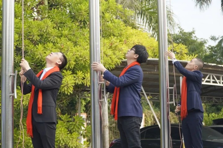 上午9點15分,廣州優百特全體員工在行政辦公樓前舉行了升旗儀式。廣州公司總經理鄭少煌致辭:2021年公司取得喜人的成績,離不開各位優百特人的辛勤付出和努力。2022年,讓我們一起為達成集團大戰略目標而繼續努力,再創佳績。祝大家在新的一年里萬事如意,身體健康,虎虎生威!